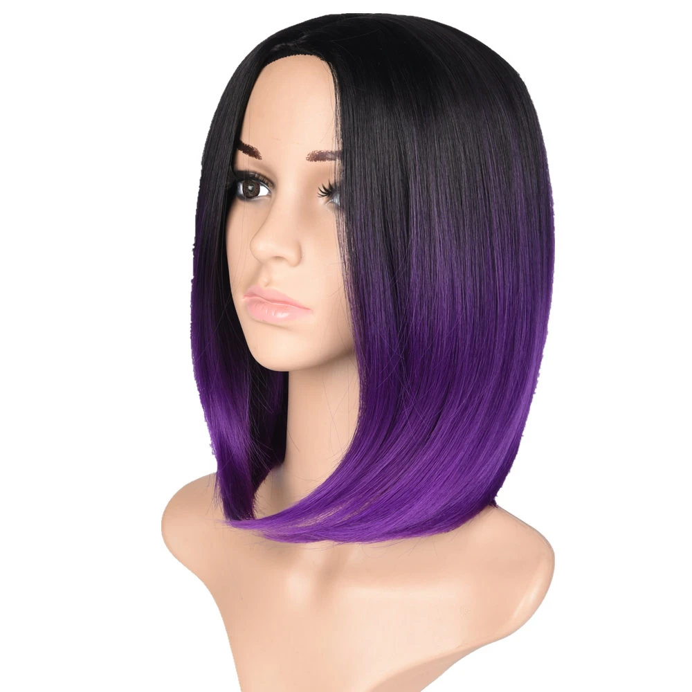 Synthetic Hair Short Bob Gradient Black Purple Suitable For Everyday Party Games Synthetic None Lace Wigs Aliexpress
